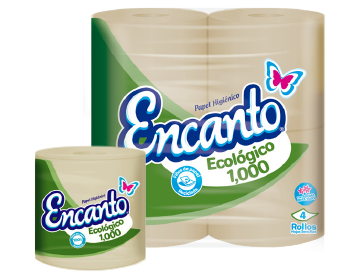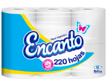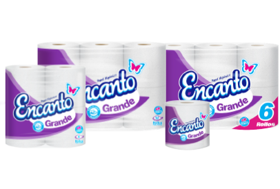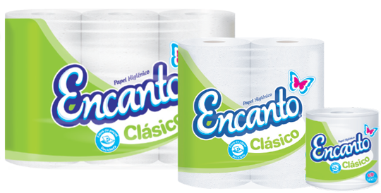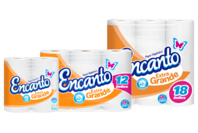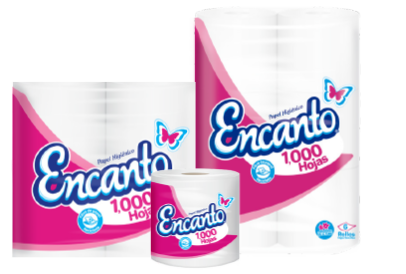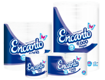 ¡Qué buen rollo! Encanto es la principal Marca de Alas Doradas, la cual tiene un despliegue de presentaciones de papel higiénico, tanto de hoja sencilla como doble, conservando la calidad y la promesa de ser fabricado con materia prima reciclada.